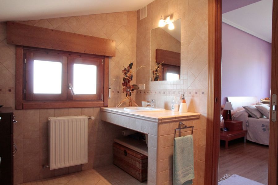 La casa dispone de piscina cubierta, un valor añadido que marca una diferencia clara frente a muchas casas rurales de la zona.